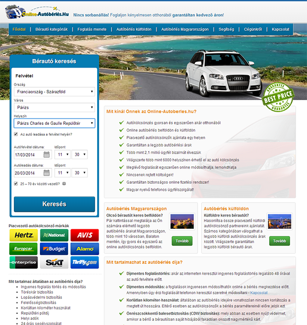 Pár kattintással megtalálja az Ön számára elérhető legjobb autóbérlés árakat Magyarország számos városában, Balaton mentén, így gyors és egyszerű az online autókölcsönzés belföldön.