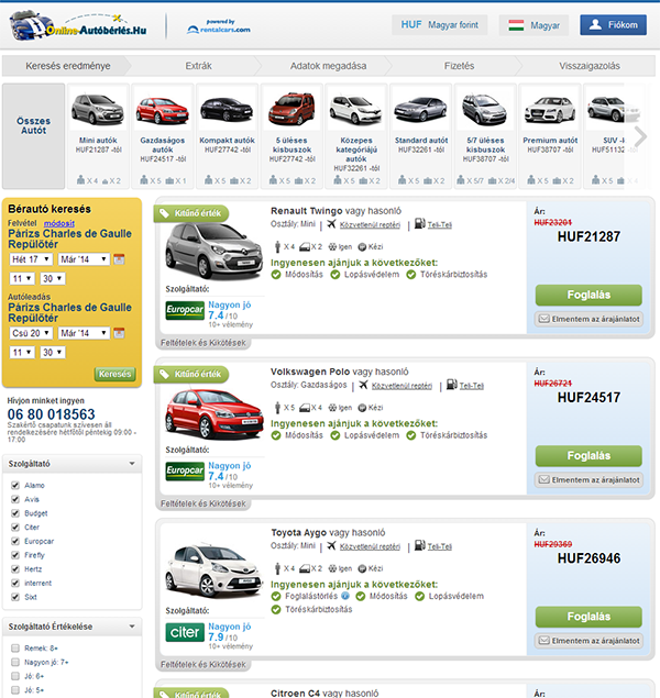Garantált legalacsonyabb árHatalmas kínálat, és megtakarítások. Hasonlítsa össze az autókölcsönzés ajánlatokat!