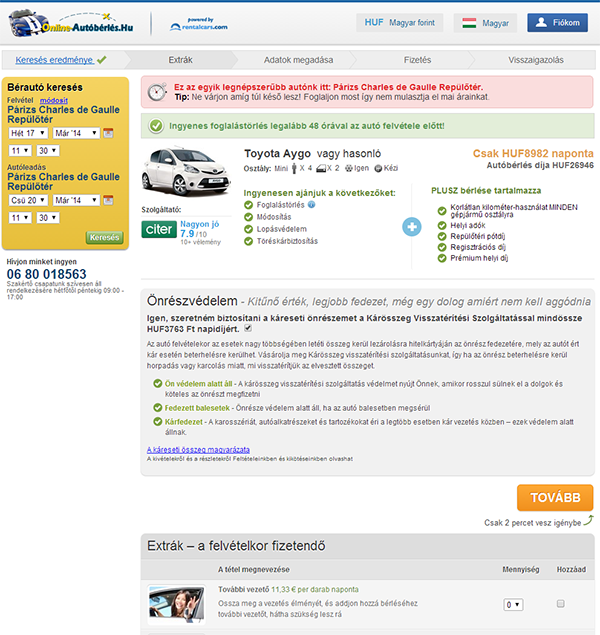 3. Lépés: Foglalás - "Extrák"