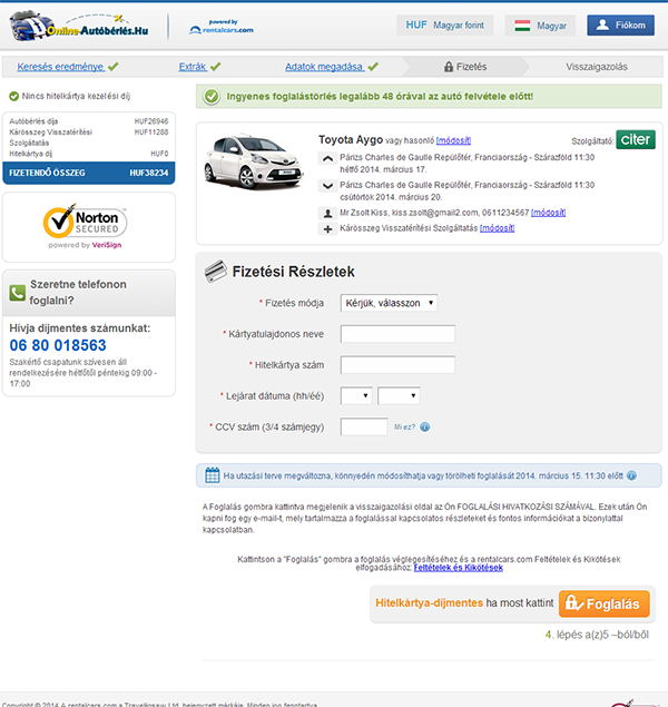 4. Lépés: Foglalás - "Adatok megadása"